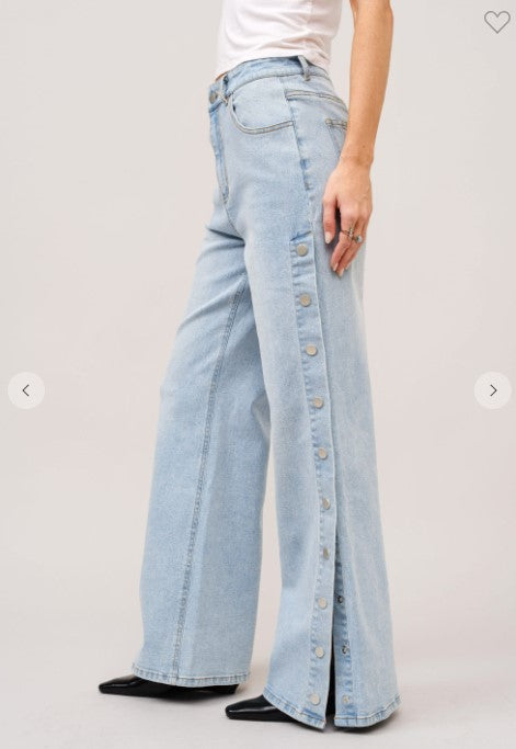 MID RISE SIDE PANEL SNAP UP WIDE LEG JEANS