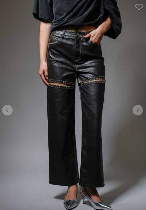 STONE STUDDED FAUX LEATHER PANTS