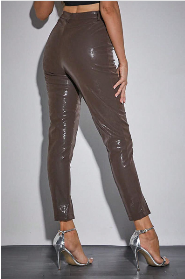 HIGH WAIST SLIT FAUX LEATHER PANTS