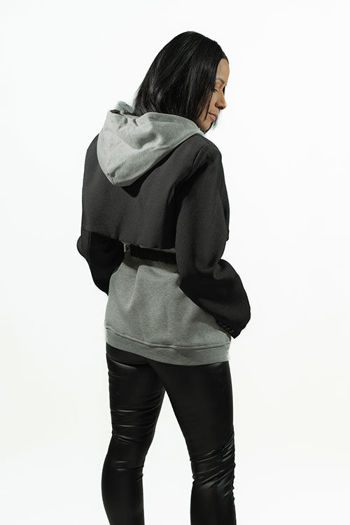 SWEATSHIRT WITH WOVEN ATTACHED BOLERO