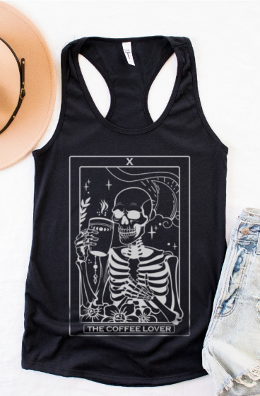 COFFEE LOVER T-SHIRT TAROT CARD SKULL CAFE COFFEE