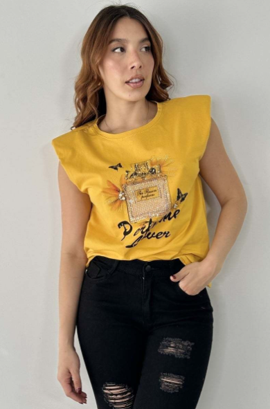 EMBELLISHED PRINTED PERFUME TEE