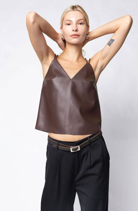 FAUX LEATHER LONG SLEEVE WITH A CORSET STYLE TOP