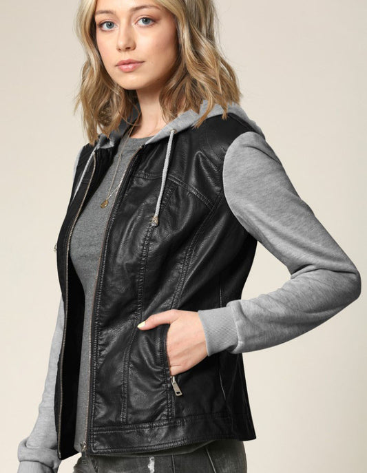 Sold outFAUX LEATHER SWEATER SLEEVE JACKET