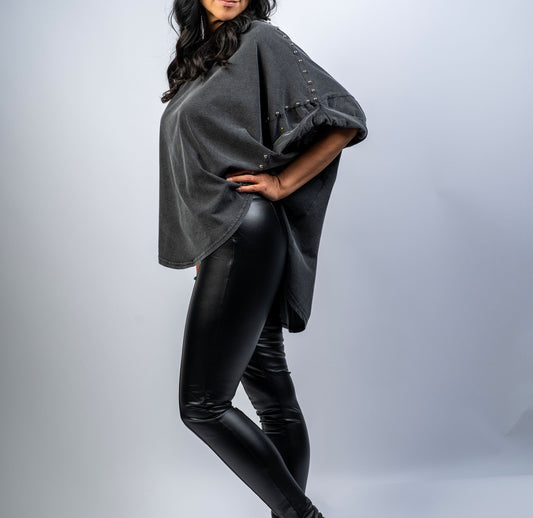 STUDDED OVER SIZED HIGH LOW T SHIRT